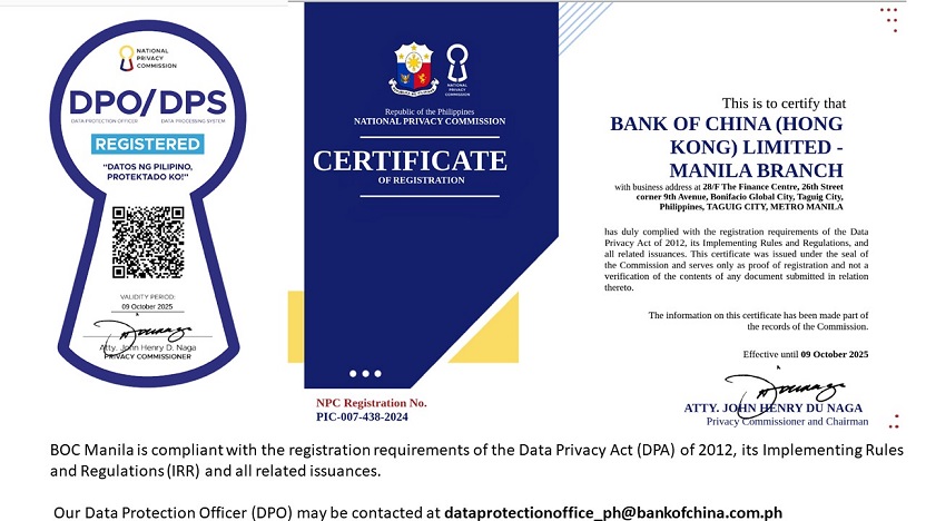 Email: DataProtectionOffice_ph@bankofchina.com.ph
